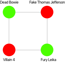 We can represent this network of villains as a graph and assign them a color that represents their respective groups: